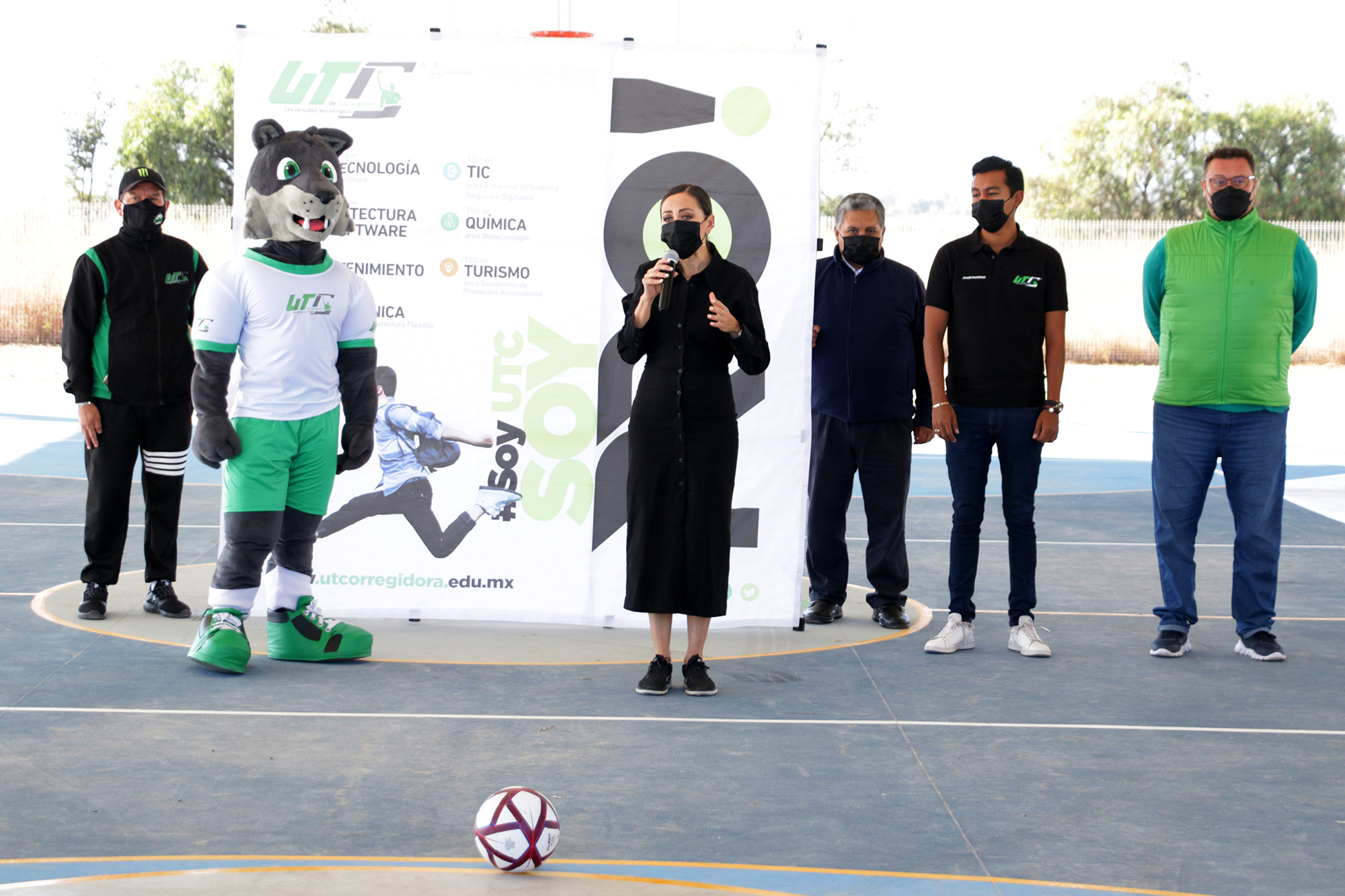 Dando cumplimiento a los protocolos sanitarios pertinentes, la rectora de la Universidad Tecnológica de Corregidora (UTC) Ana Eugenia Patiño Correa, inauguró el primer Torneo Flash de Fútbol 7, organizado en las instalaciones de la casa de estudios, y en el que participaron distintos equipos mixtos