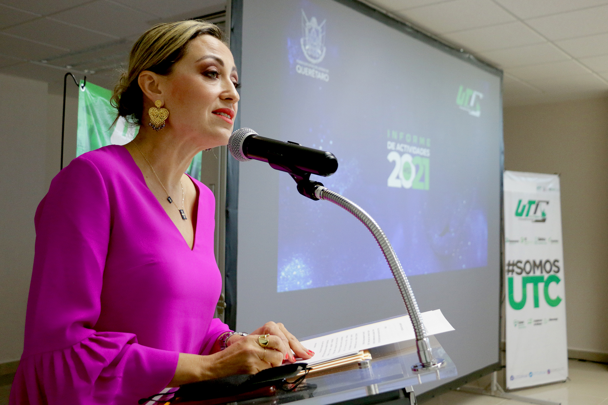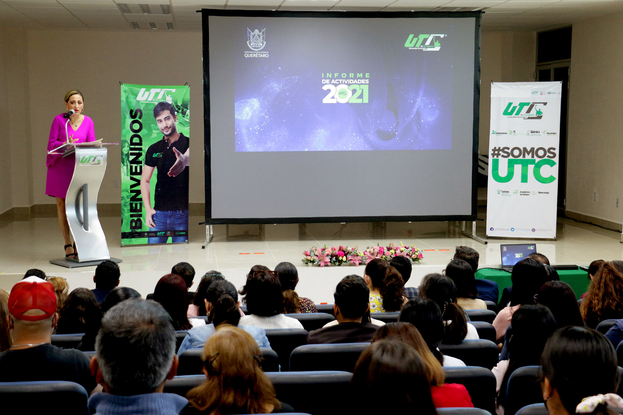 La rectora de la Universidad Tecnológica de Corregidora (UTC) Ana Eugenia Patiño Correa, llevó a cabo la presentación del informe de actividades correspondiente al 2021, en un acto donde participaron estudiantes, docentes y personal administrativo de esta casa de estudios, a quienes reconoció el esfuerzo realizado durante el periodo de pandemia en el que se mantuvieron las labores a distancia, a su vez, refrendó el compromiso de llevar a la educación superior al siguiente nivel.