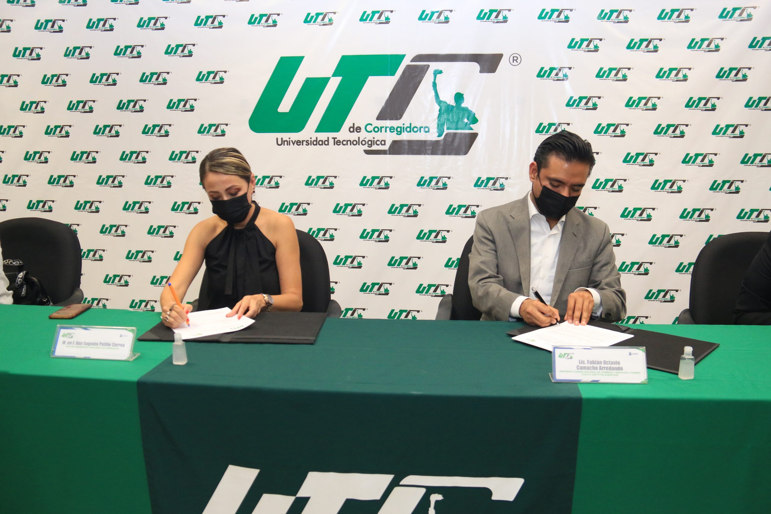 Con la finalidad de promover, difundir y ejecutar programas relacionados con la ciencia, tecnología, turismo y comercio en nuestra entidad, la rectora de la Universidad Tecnológica de Corregidora (UTC) Ana Eugenia Patiño Correa, firmó un convenio de colaboración con el presidente de la Cámara Nacional de Comercio, Servicios y Turismo (CANACO SERVYTUR) Querétaro, Fabián Camacho Arredondo, en el que se acordó generar sinergia entre instituciones.