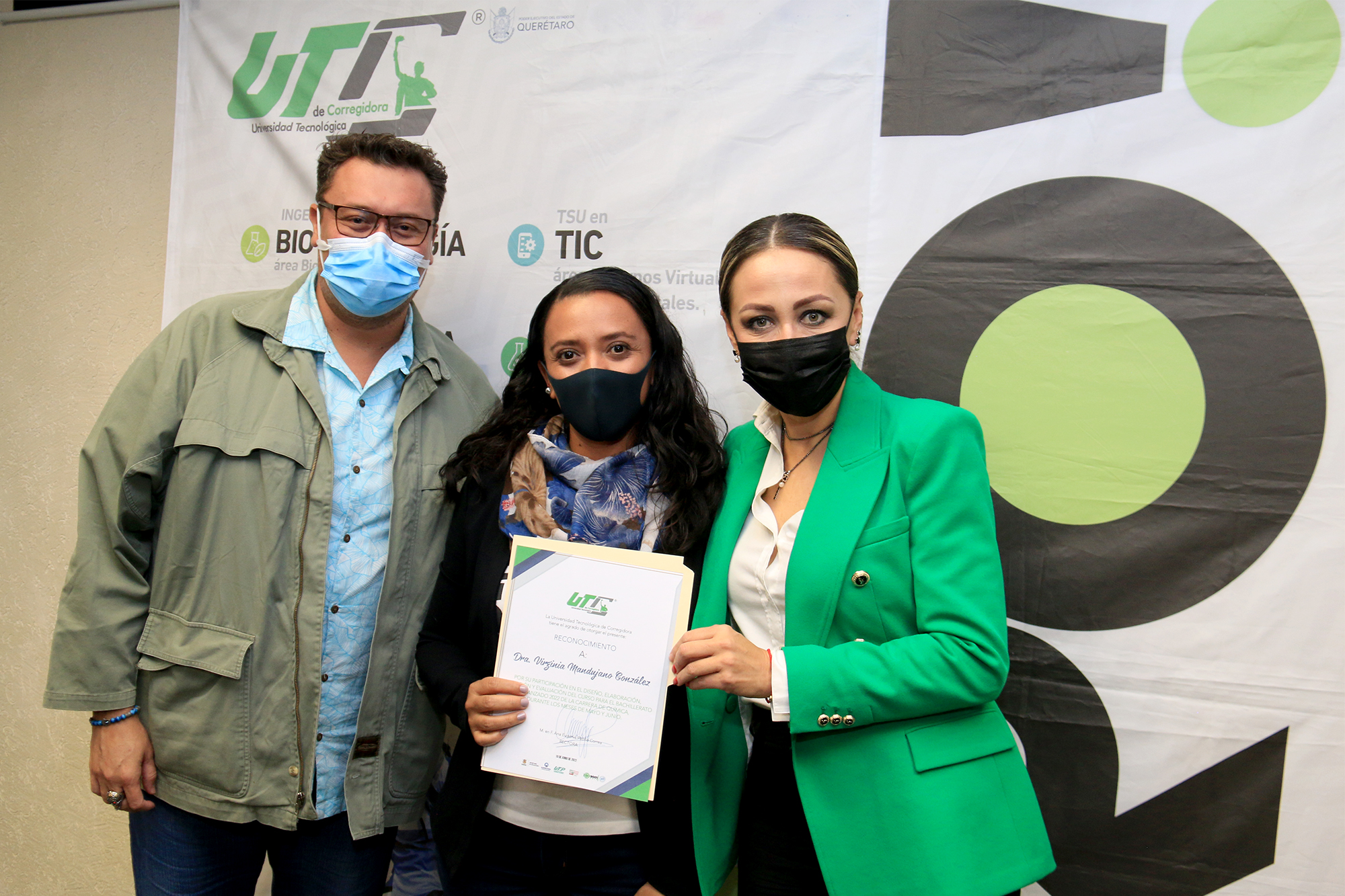 Luego de la conclusión del programa de Bachillerato Avanzado llevado a cabo por la Universidad Tecnológica de Corregidora (UTC), la rectora Ana Eugenia Patiño Correa, reconoció la labor del cuerpo docente de esta casa de estudios por su destacada labor, que permitió alcanzar un alto índice de satisfacción por parte de alumnos del Colegio de Estudios Científicos y Tecnológicos del Estado de Querétaro (CECyTEQ) de los planteles de Corregidora y Huimilpan.