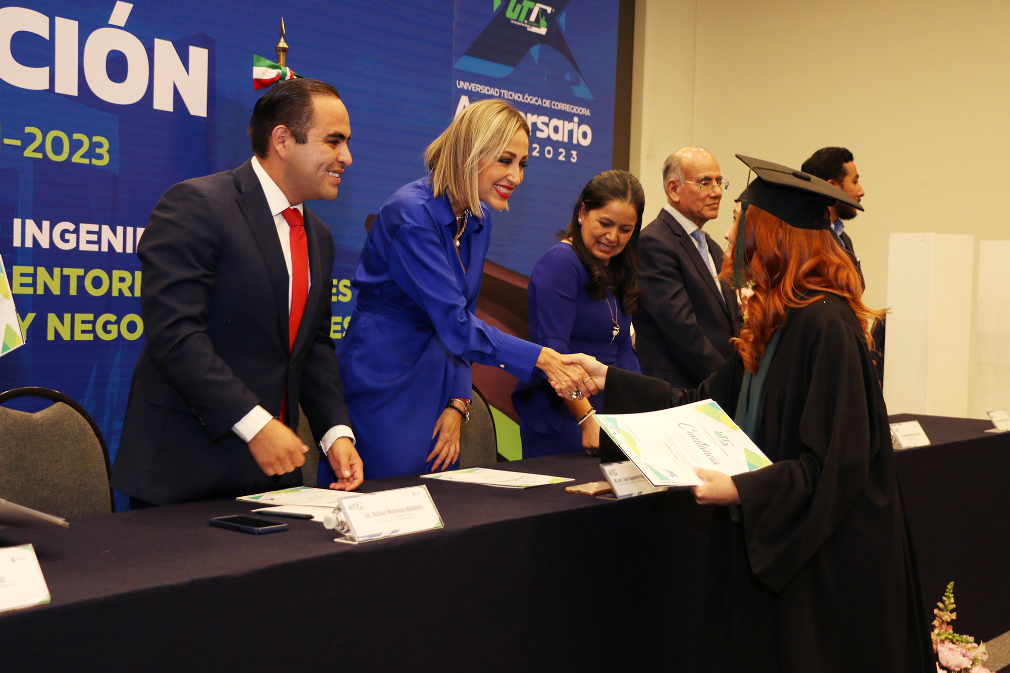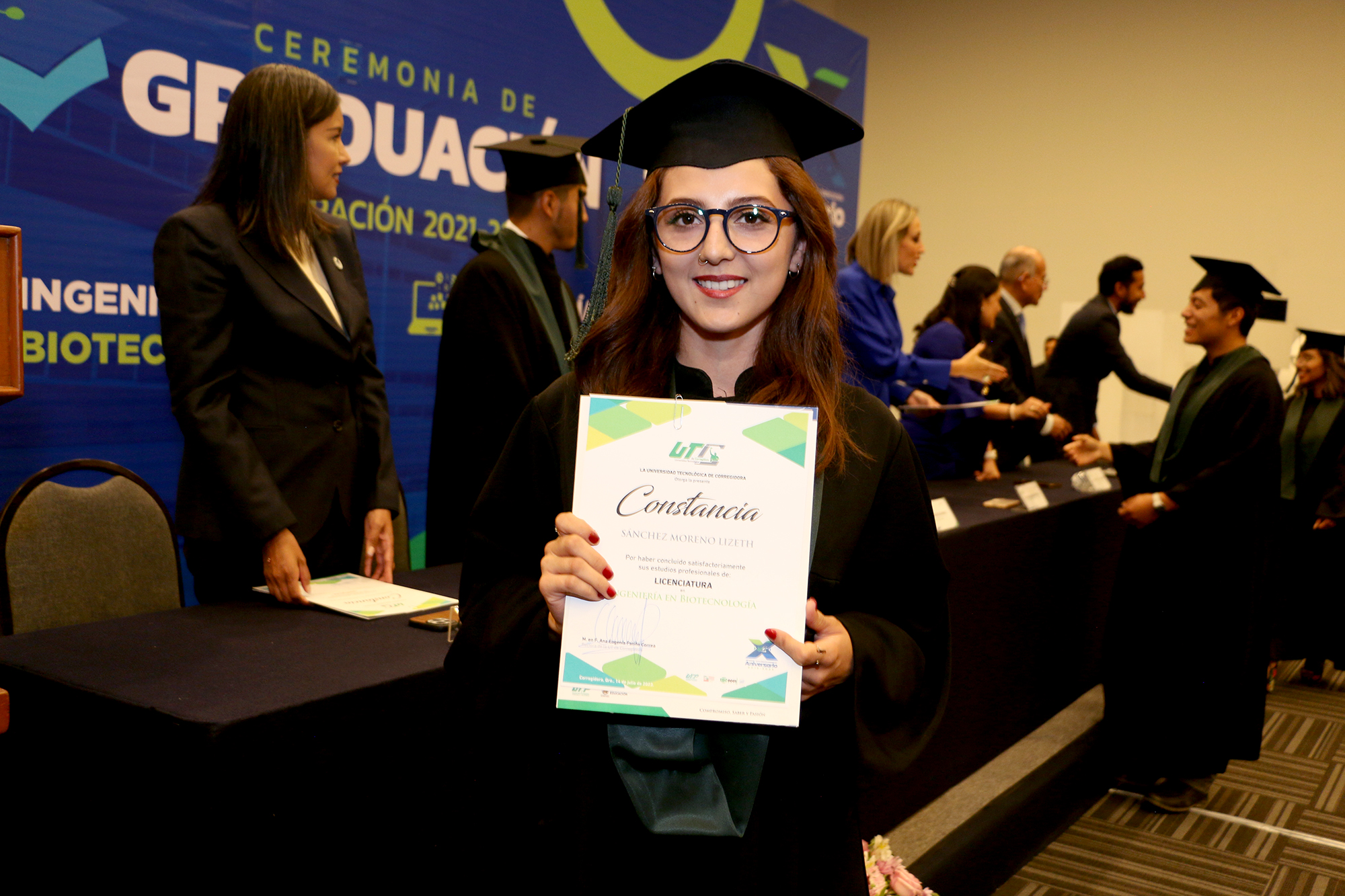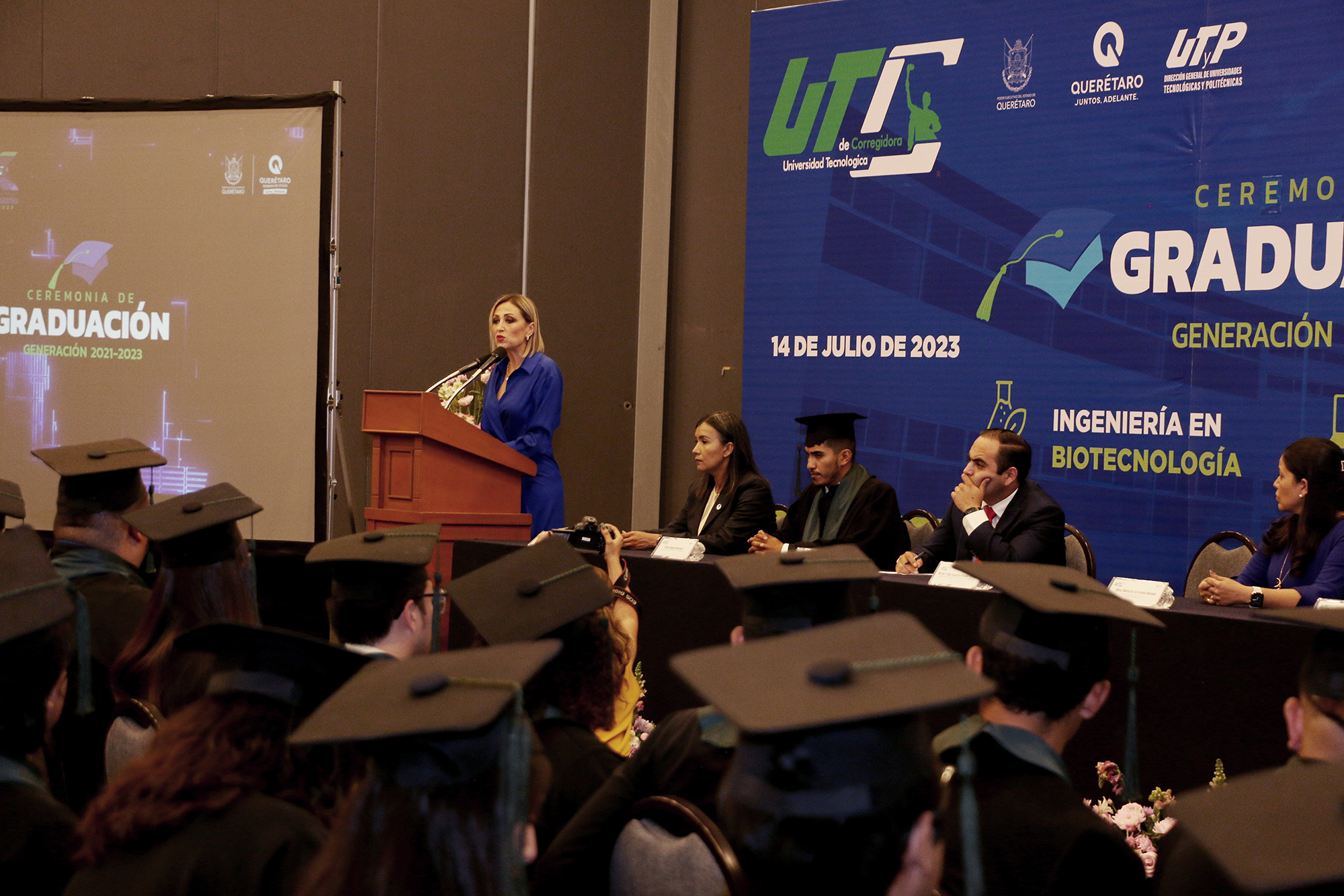 La Universidad Tecnológica de Corregidora (UTC), se enorgullece en anunciar la celebración de su ceremonia de graduación de la Generación 2021-2023, de 60 egresadas y egresados en Ingeniería en Arquitectura de Software y Biotecnología, que recibieron constancias de culminación de estudios universitarios, de manos de la rectora Ana Eugenia Patiño Correa, en evento que tuvo lugar en el Querétaro Centro de Congresos (QCC).