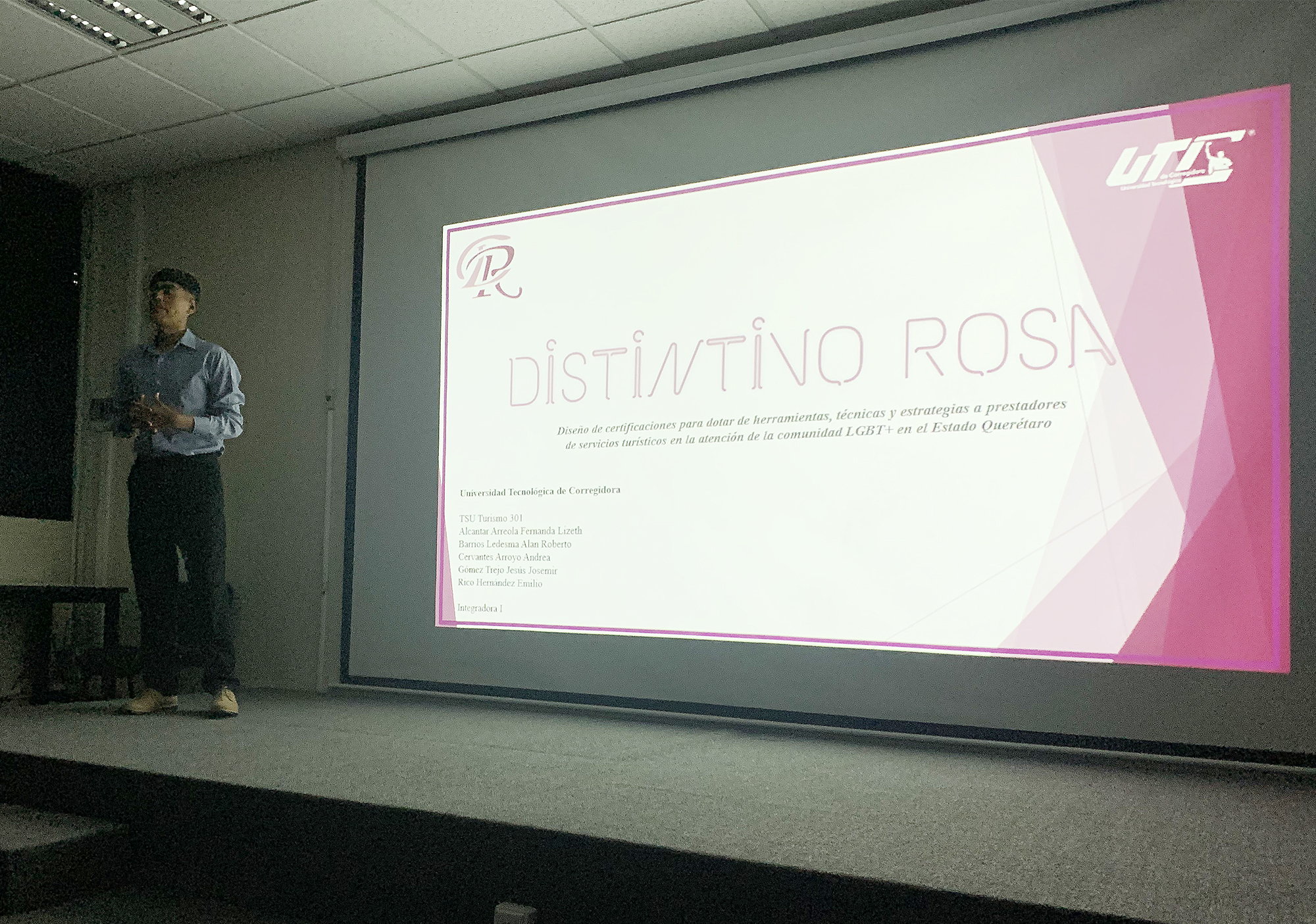 Como parte del desarrollo de proyectos de innovación para la promoción turística del estado, estudiantes de Turismo de la Universidad Tecnológica de Corregidora (UTC), presentaron la propuesta de un “Distintivo Rosa”, mediante la elaboración de una serie de certificaciones que permitan dotar de herramientas y estrategias a prestadores de servicios turísticos para la atención de la comunidad LGBT+ en el estado de Querétaro.