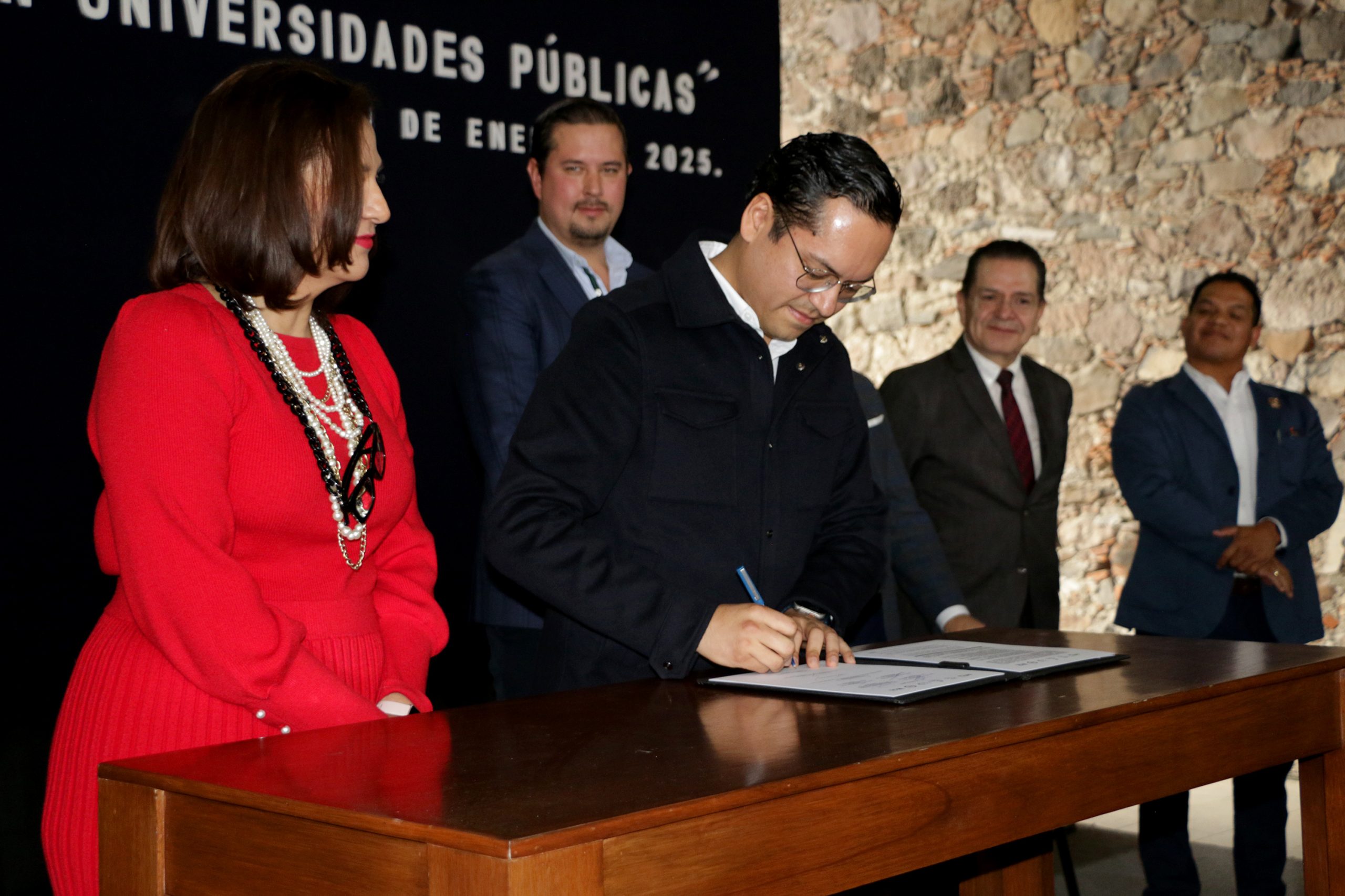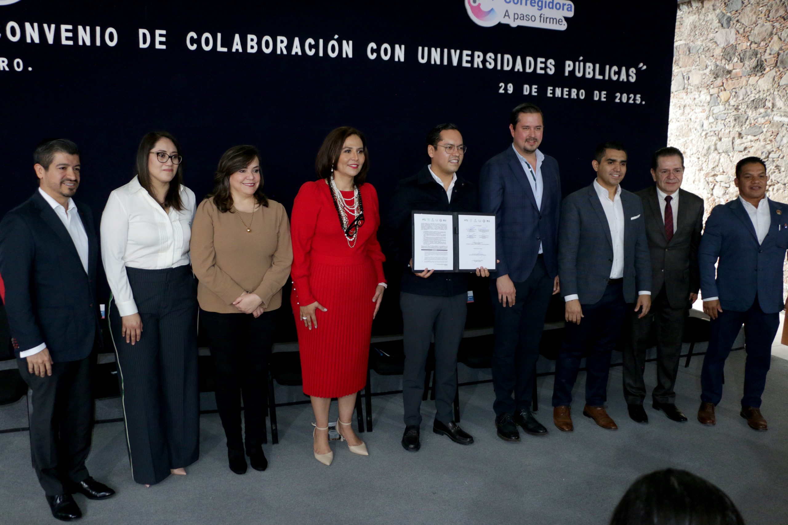 El convenio fue firmado por la rectora de la Universidad Autónoma de Querétaro (UAQ), Silvia Amaya Llano; la rectora de la Universidad Politécnica de Querétaro (UPQ), Diana Pérez Mejía; el rector de la Universidad Tecnológica de Querétaro (UTEQ), Luis Fernando Pantoja; el rector de la Universidad Tecnológica de Corregidora (UTC), Alberto Lugo Ledezma; y el director general de la Escuela Normal del Estado, Ernesto Guillén Alcántara.