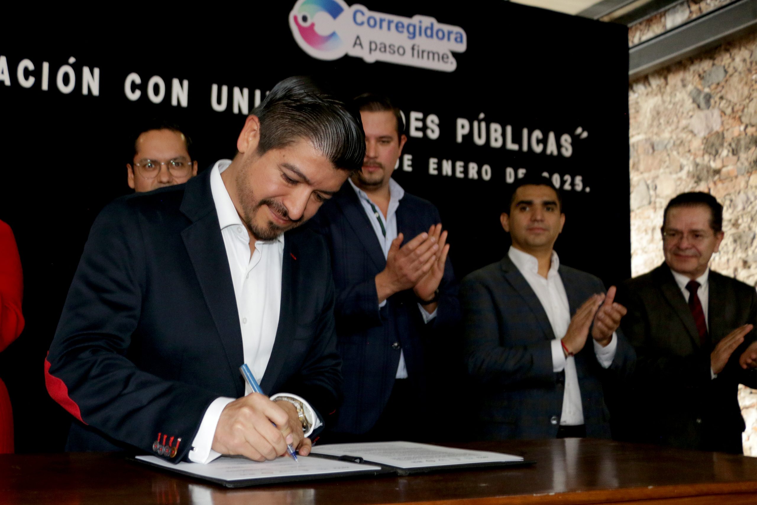 El presidente municipal de Corregidora, Chepe Guerrero, llevó a cabo la firma de un convenio de colaboración con cinco universidades públicas del estado, para beneficiar a la comunidad estudiantil mediante el programa “Universitario A Paso Firme”. Este programa consiste en otorgar a los universitarios un apoyo monetario de manera semestral para la reinscripción, además de ofrecerles un espacio para que realicen su servicio social.