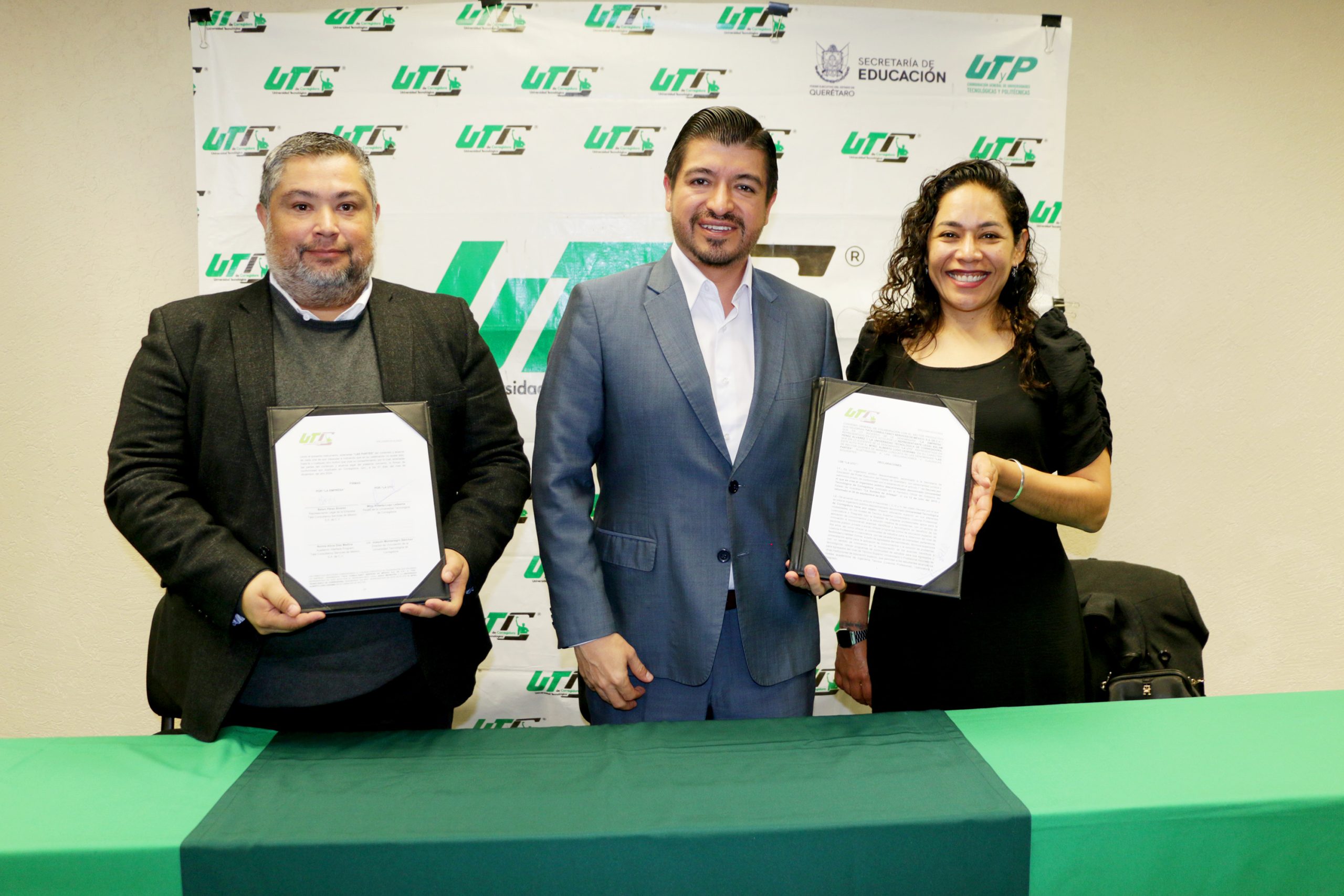 Con el fin de fortalecer la vinculación entre el sector educativo y la industria, el rector de la Universidad Tecnológica de Corregidora (UTC), Alberto Lugo Ledesma, y el gerente de Recursos Humanos de la empresa TATA Consultancy Services (TCS), Balam Pérez Álvarez, firmaron un convenio de colaboración para que estudiantes de esta casa de estudios puedan realizar sus procesos de estadías profesionales. Al evento asistió la titular del Programa de Interfaz Académico y de Reclutamiento en Campus Universitario, Norma Alicia Díaz Medina.