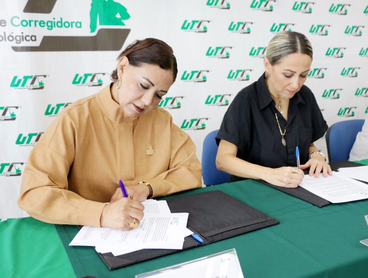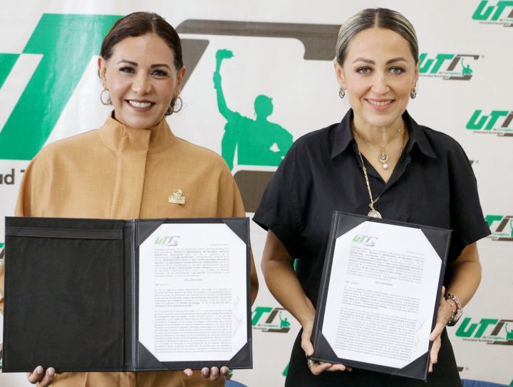 La rectora de la Universidad Tecnológica de Corregidora (UTC), Ana Eugenia Patiño Correa y la presidenta del Consejo C...